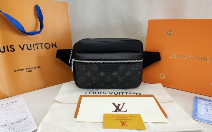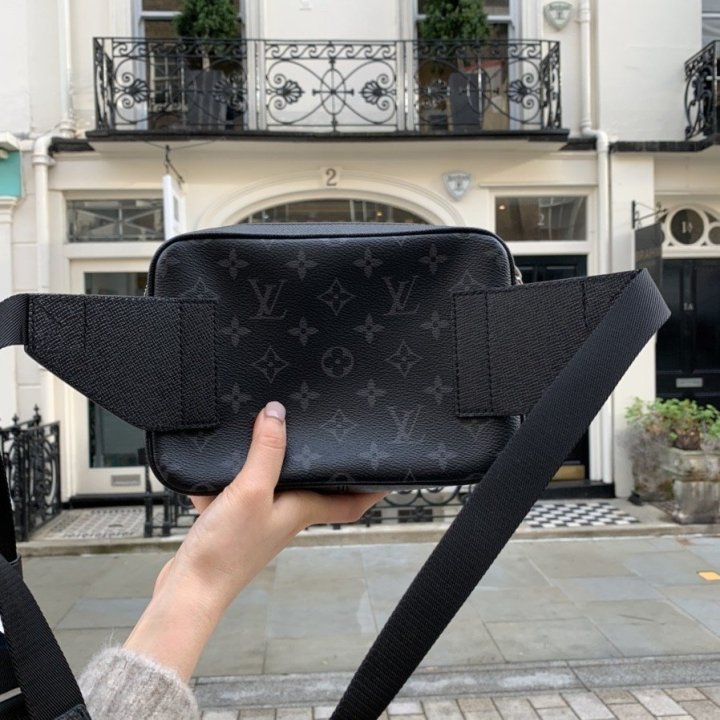 블랙 한정판 아웃도어 벨트 백은 모노그램 캔버스와 유연한 타이가