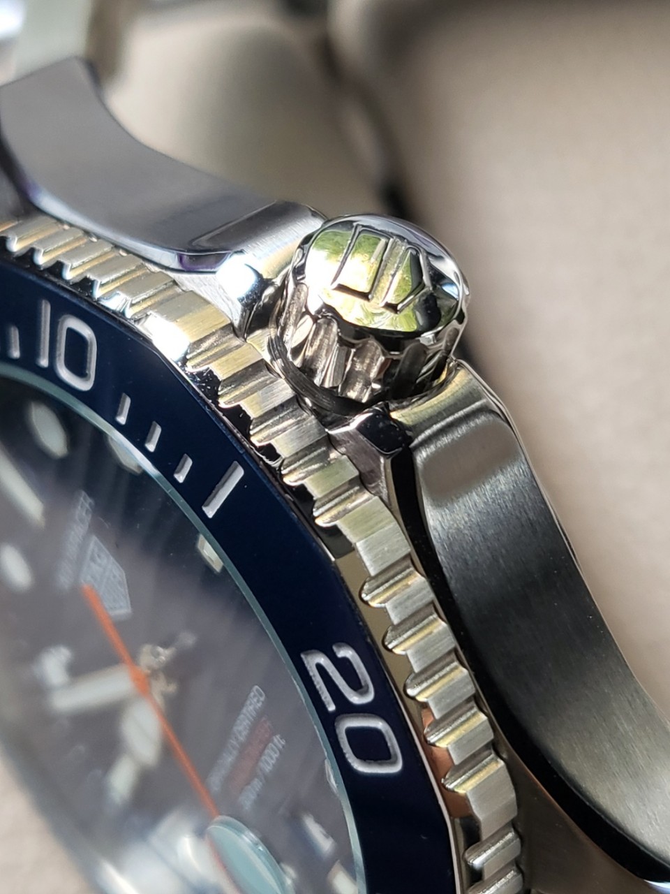 디테일과 "강렬한 오렌지색 시침"형태와