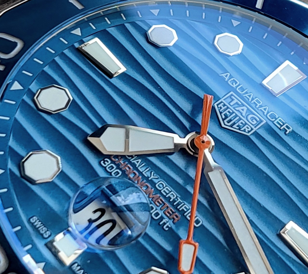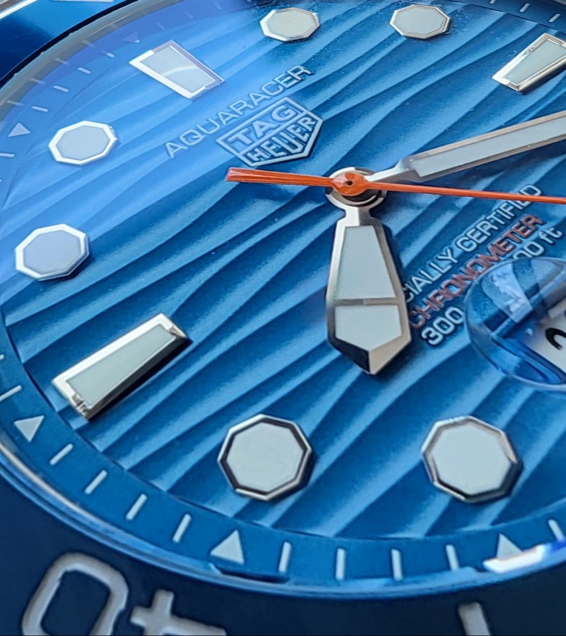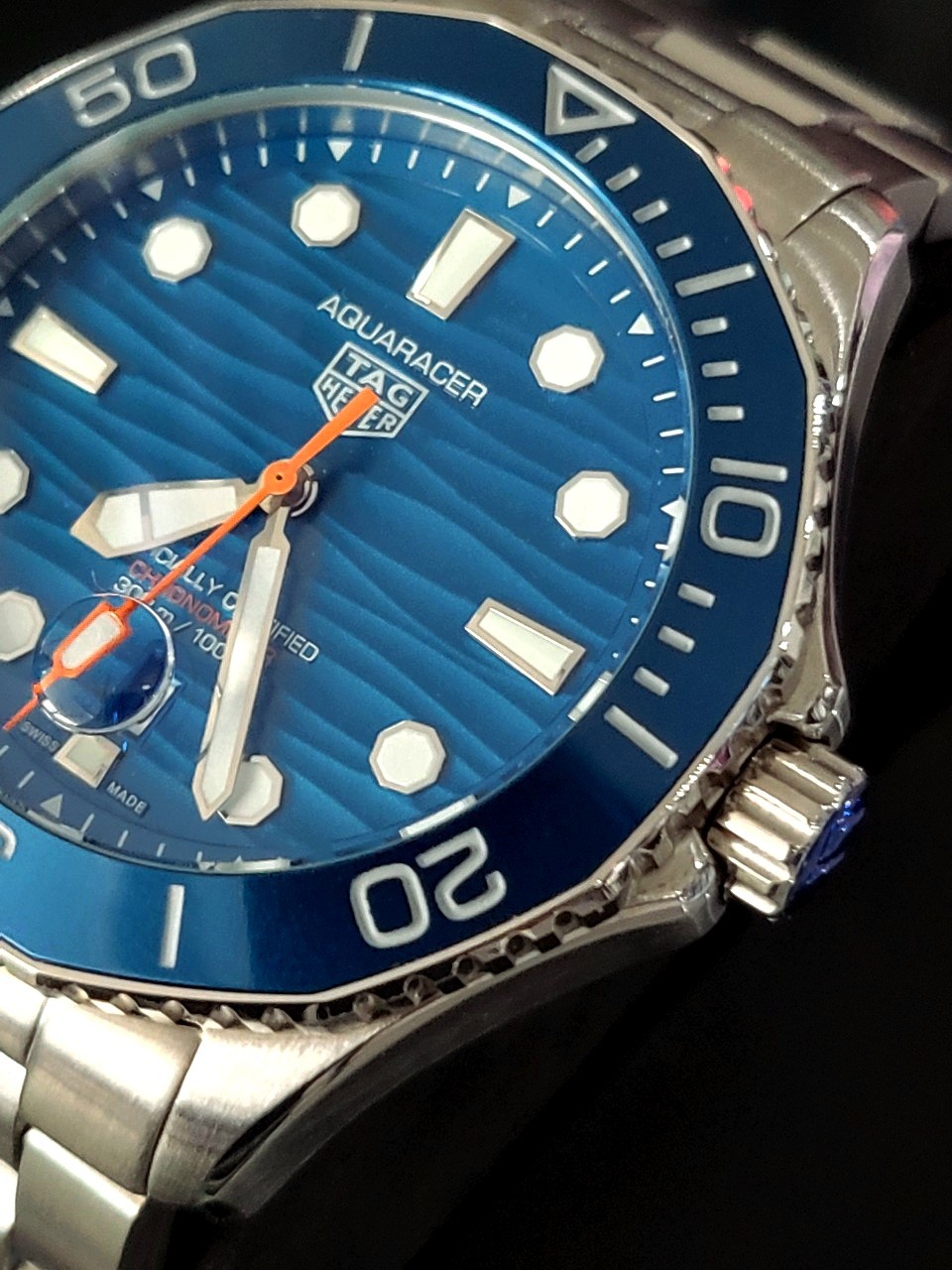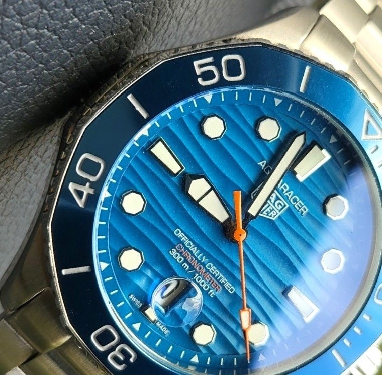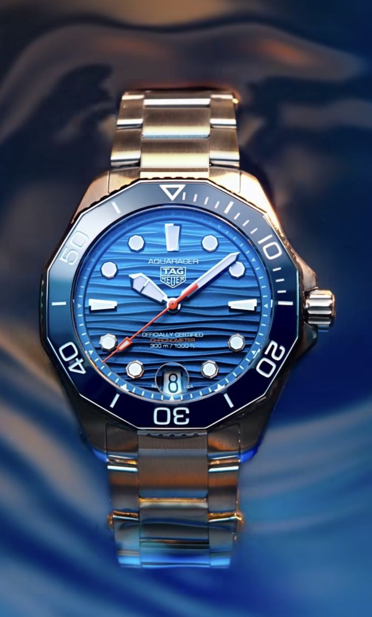 선레이 효과를 더한 블루다이얼의 "굽이치는 파도를 넘어를 표현한"